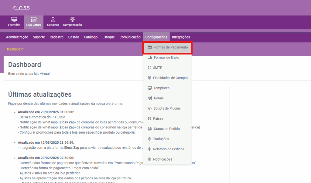 No painel administrativo da Eloss, vá em: