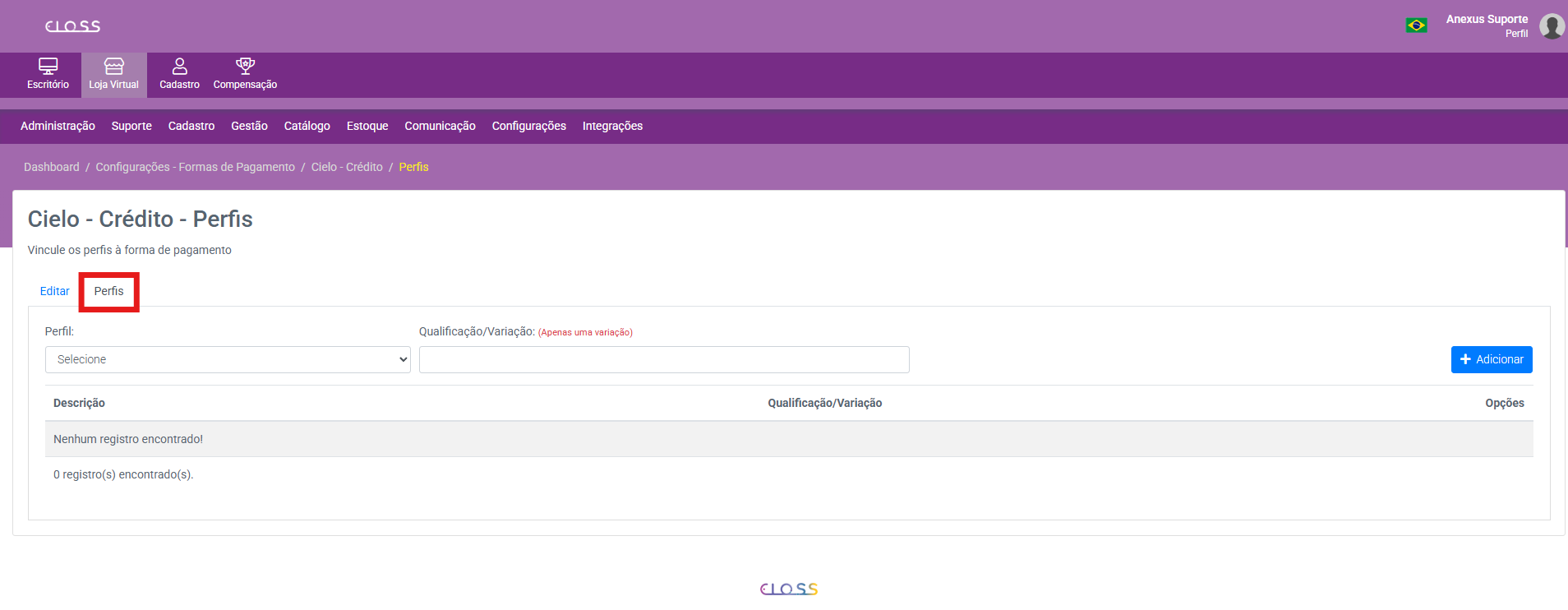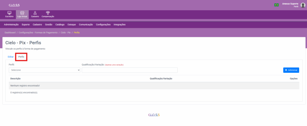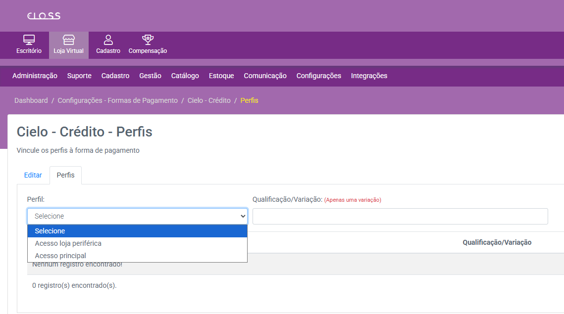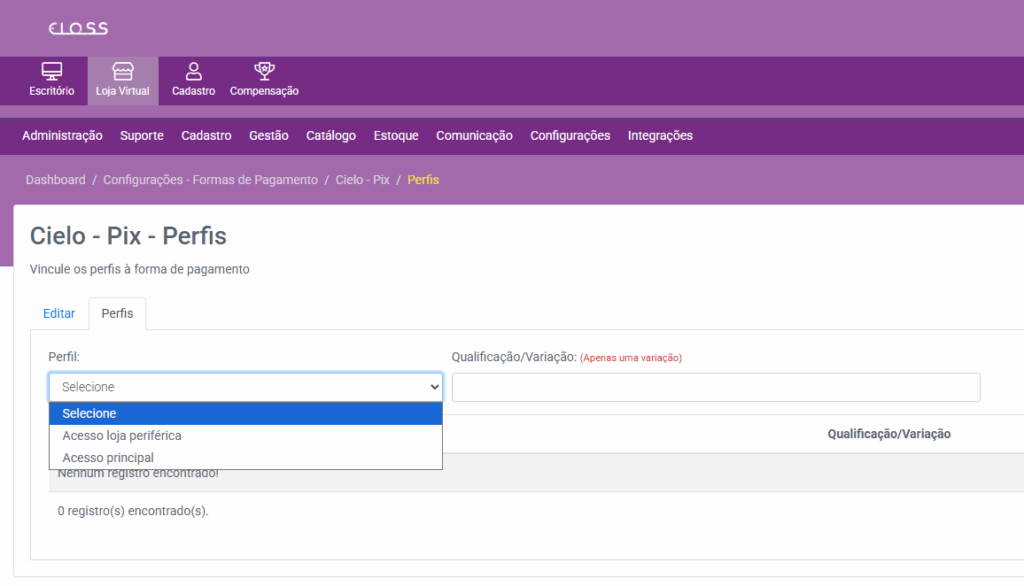 Se não houver necessidade de vincular a nenhuma qualificação, deixe o campo em branco e a forma de pagamento ficará disponível a todos dentro do perfil selecionado.