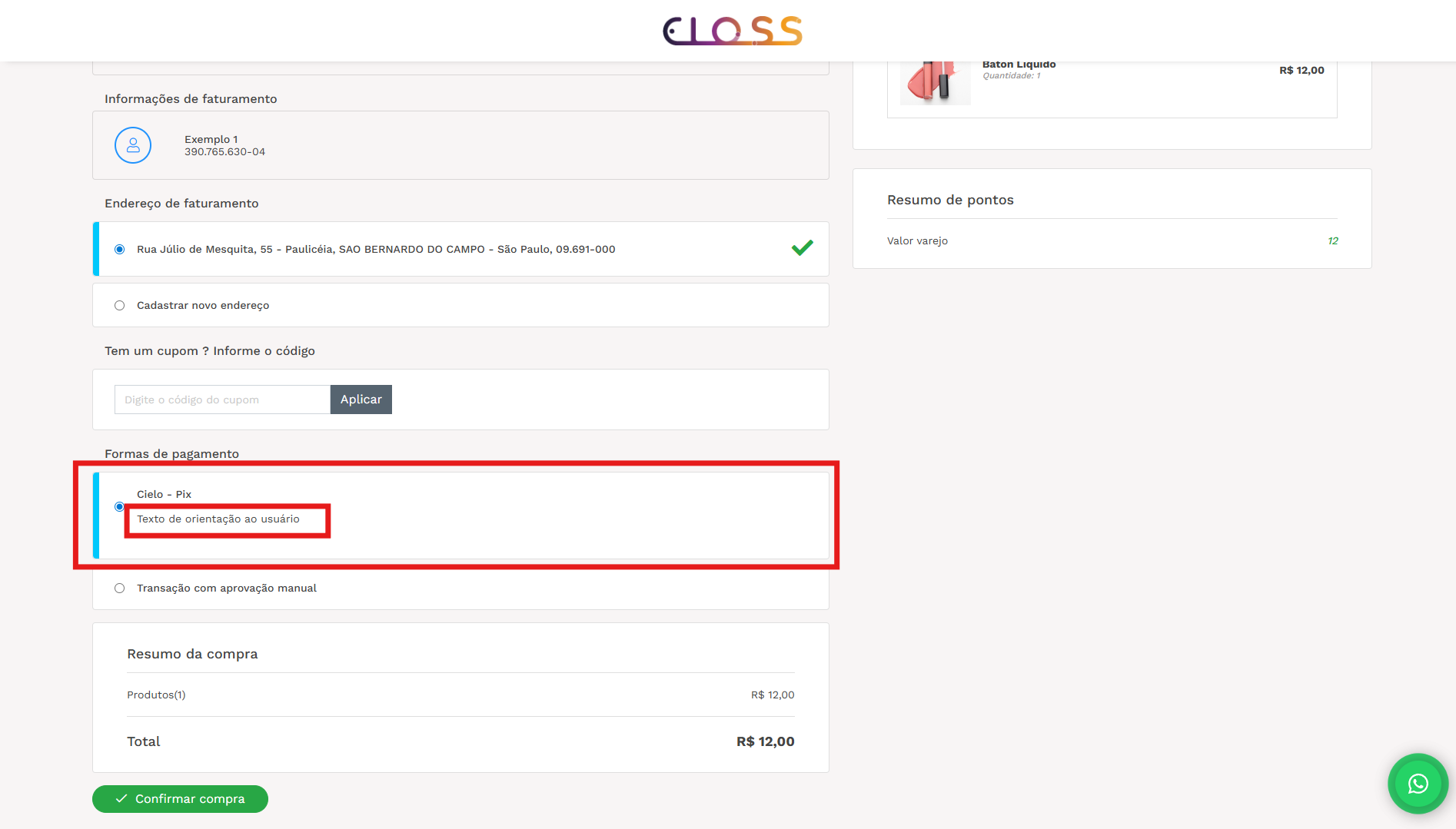 Veja a aplicação no checkout da loja: